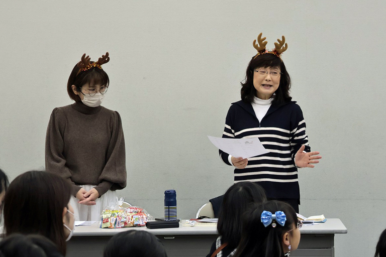 ![]() ●最後は、先生のつけてたトナカイのカチューシャやサンタの帽子をめぐって、