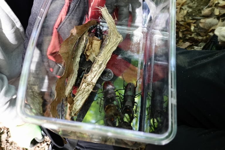 今年の梅雨は早くに明けてしまい、連日暑い日が続いていますね。 三連休最後の日の「海の日」に山へ行きました。 生徒さんの弟さんH君が生物大好きということで、そのご両親と私は ダンナの案内で賑やかに「クワガタ採り」に出かけました。 ダンナはHPやブログもやるほどの昆虫好き。 ![]() メインのポイントでは、誰か先に来ていたみたいで「残りもの感」がありましたが、 山道の途中に生えているドングリの木でノコギリクワガタなどが次々に見つかり、 大小合わせて計20匹以上は楽しく捕獲できました。 ![]() ![]() ![]() とにかくこのH君は、生き物を見付けるや「あっ」と声を上げて、イモリであろうがトカゲであろうが、 カエルやサワガニでも、とんでもなく素早い動きで素手でとっ捕まえる生き物好きで、 ダンナも感心していました。 ![]() 本日の成果 ネブト、コクワ、スジは各1頭であとは全てノコとミヤマ お持ち帰りの厳選中 ![]() 第一次選考の通過者たち ![]() 頭の上から降ってきたノコギリクワガタ 普段山歩きなどしないので、クタクタになりましたが、楽しい一日でした。 ![]() |